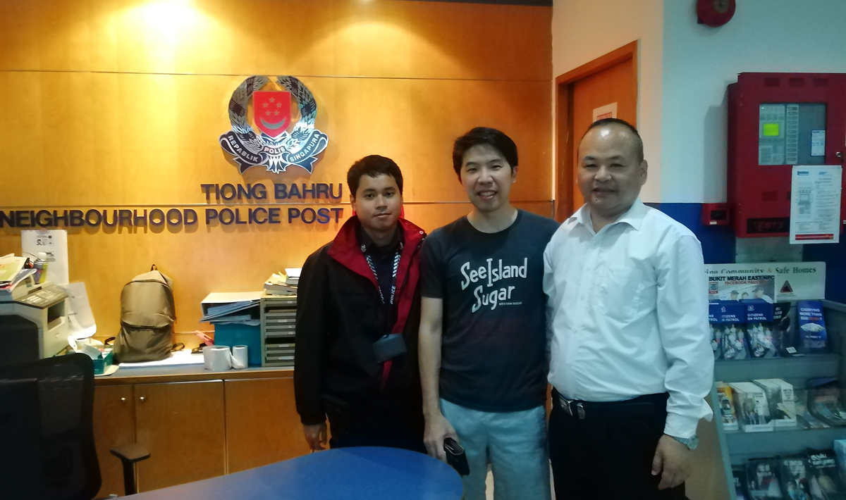 ? ? ? 兩人環(huán)望四周尋找錢包失主無(wú)果后,考慮到失主丟失錢包后肯定十分焦急,立即第一時(shí)間將錢包送到附近的警察局并說(shuō)明情況。經(jīng)辦警務(wù)人員根據(jù)錢包中的有關(guān)聯(lián)系人信息,幾經(jīng)周折,最終尋找到錢包的失主Loh Mingquan(羅明全)先生。? ? ??羅先生40分鐘后趕到警察局,張國(guó)慶、韓國(guó)新兩位同志當(dāng)面將錢包交給羅先生,羅先生緊緊握住兩人的手,激動(dòng)的連說(shuō)感謝:“謝謝!謝謝好心人!”在得知兩人是中國(guó)魯西集團(tuán)的員工來(lái)新加坡出差時(shí),更是連連豎起大拇指,對(duì)中國(guó),對(duì)魯西集團(tuán),對(duì)魯西人肅然起敬,表示會(huì)向他的朋友和單位介紹魯西產(chǎn)品,給魯西推薦客戶。警察局人員對(duì)兩位同志的行為也表示非常感謝并合影留念。