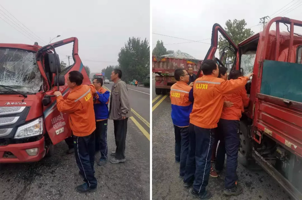 10月10日8時40分,在距黃河大橋500米處發(fā)生交通事故:一輛臨沂牌照的小貨車與聊城半掛追尾,貨車司機被困駕駛室內(nèi),司機的女兒圍著駕駛室直跺腳,當時的情況萬分緊急。魯西集團平陰魯西裝備公司的龐汝金、王甲勝、侯斌、趙昊忠和司機于波駕車去集團送貨途經(jīng)車禍現(xiàn)場,五名員工立即下車一邊救助傷員,一邊維護交通秩序,受到過路司機和交警的稱贊。