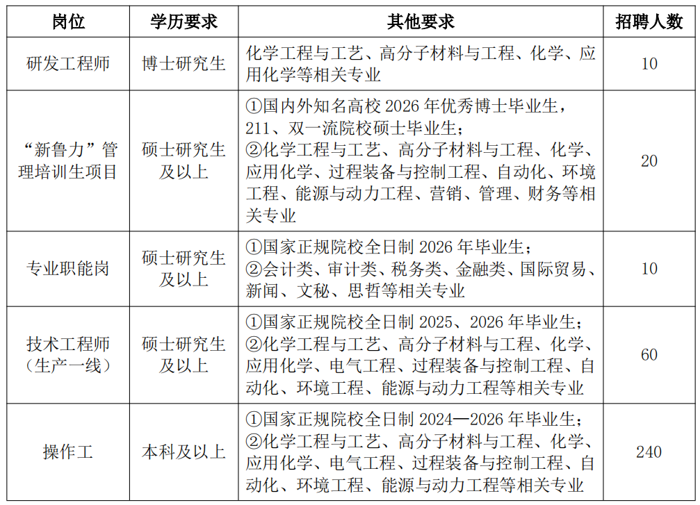 魯西集團(tuán)是中國中化控股有限責(zé)任公司旗下的大型綜合性化工企業(yè),總部位于山東省聊城市高新技術(shù)開發(fā)區(qū)化工產(chǎn)業(yè)園。目前,公司總資產(chǎn)355億元,在崗員工1萬余人,擁有上市公司魯西化工(000830.SZ),業(yè)務(wù)范圍覆蓋基礎(chǔ)化工、高端化學(xué)品、化工新材料、化工工程等領(lǐng)域,產(chǎn)品涉及交通運(yùn)輸、建筑材料、電子電氣、醫(yī)療健康、農(nóng)業(yè)植保、包裝紡織等行業(yè),榮獲“中國化工行業(yè)技術(shù)創(chuàng)新示范企業(yè)”“中國化工園區(qū)30強(qiáng)”“國家技術(shù)創(chuàng)新中心示范企業(yè)”等稱號?,F(xiàn)面向全社會誠聘英才,具體如下:
